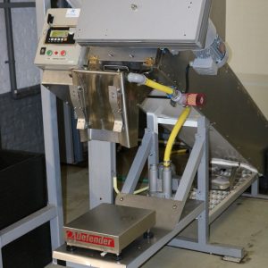Er wordt een lege zak geplaatst en met “Start” indrukken wordt de lege zak automatisch getarreerd en daarna gevuld tot het gewenste gewicht, in dit geval 8 kg zakken of 20 kg dozen.
