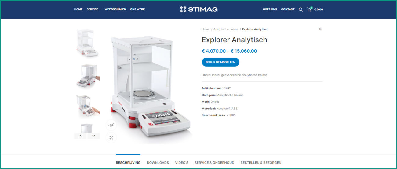 Bovendien vind je bij elke weegschaal bijbehorende foto’s, video’s, documentatie, handleidingen en een tabel met alle modellen én de beschikbare opties.