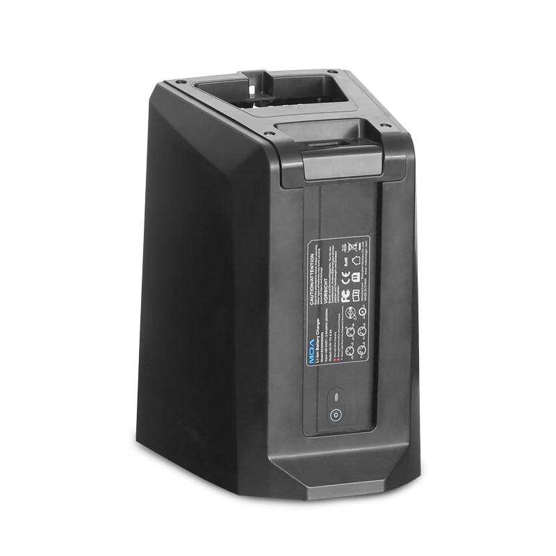 Snellaadstation voor batterijen (2u). Voor gebruik op een werkbank of voor wandmontage.