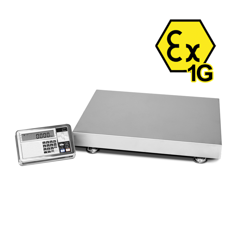 Zeer nauwkeurige vloerbalans voor gevaarlijke zones. Beschermingsklasse II 1G Ex ia II B T4 Ga voor gas. CE-M goedgekeurd (OIML R-76 / EN 45501).