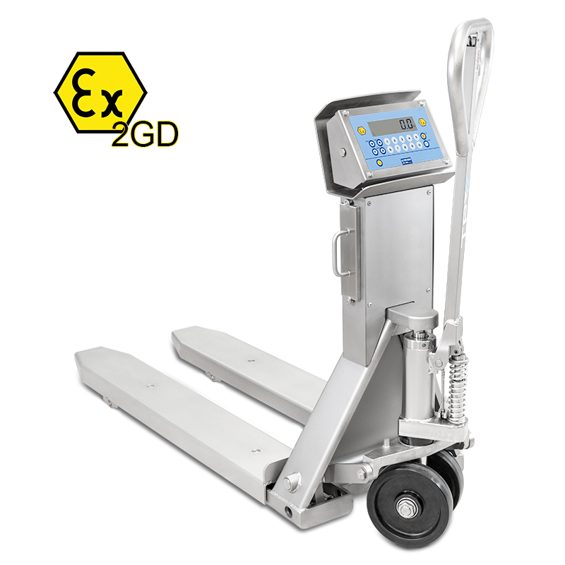 ATEX pallettruck voor gebruik in explosiegevaarlijke zones (ZONES 1 & 21 & 2 & 22) met bescherming Ex II 2G IIB T4 Gb X en Ex II 2D IIIC T197°C Db X.