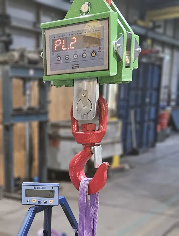 In de bovenloopkraan hangen twee takels met ieder een kraanweegschaal.